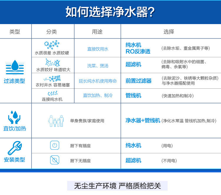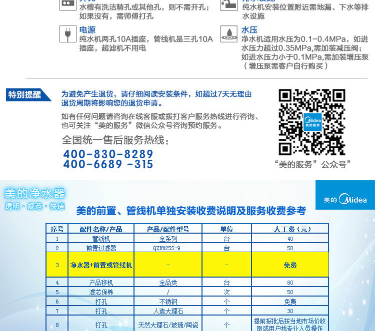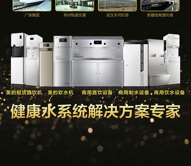 包裝清單"商用凈水機1臺; 使用說明書1本; 服務安裝單+客戶服務卡1份; 門鑰匙2把、調節支撐腳4個; 排水軟管1根; 4分波紋管1根; 排水管端蓋堵頭1個; 扎帶2根; 4分密封墊4個; 3角調溫鑰匙1把1 800G反滲透膜1支"
